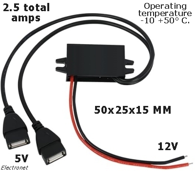 CODICE: AN700AL3. ADATTATORE 12-5V 2.5 AMPERE 50x25x15 MM. PER ALIMENTARE IN CONTINUO LE MICROCAMERE 4G E WIFI. |